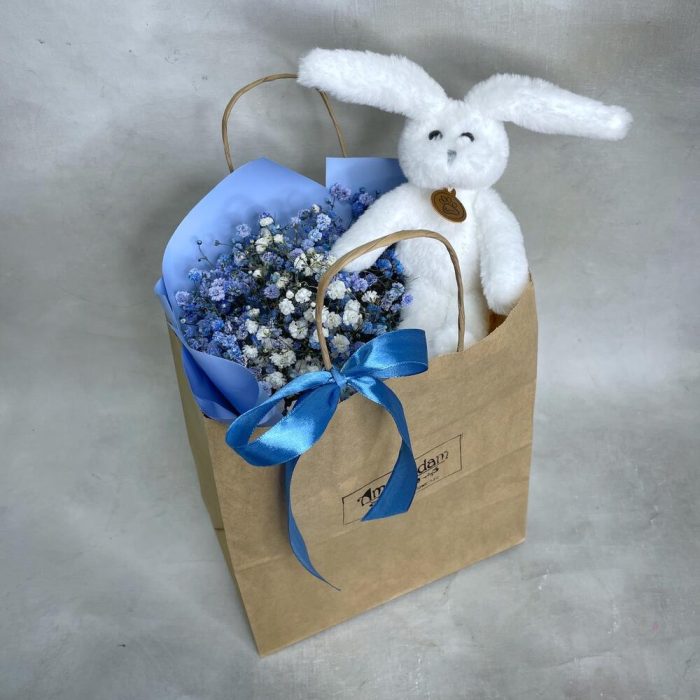 Гипсофила – 3 шт.Упаковка – 1 шт.игрушка зайчонок lapkin – 1 шт.Пакет крафт – 1 шт.