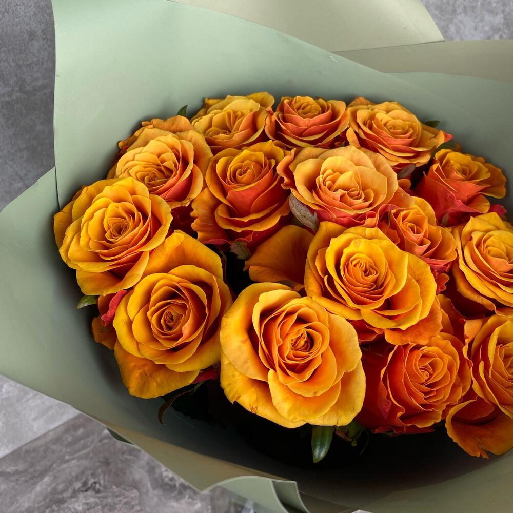 15 оранжевых элитных роз 60 см
