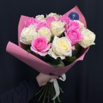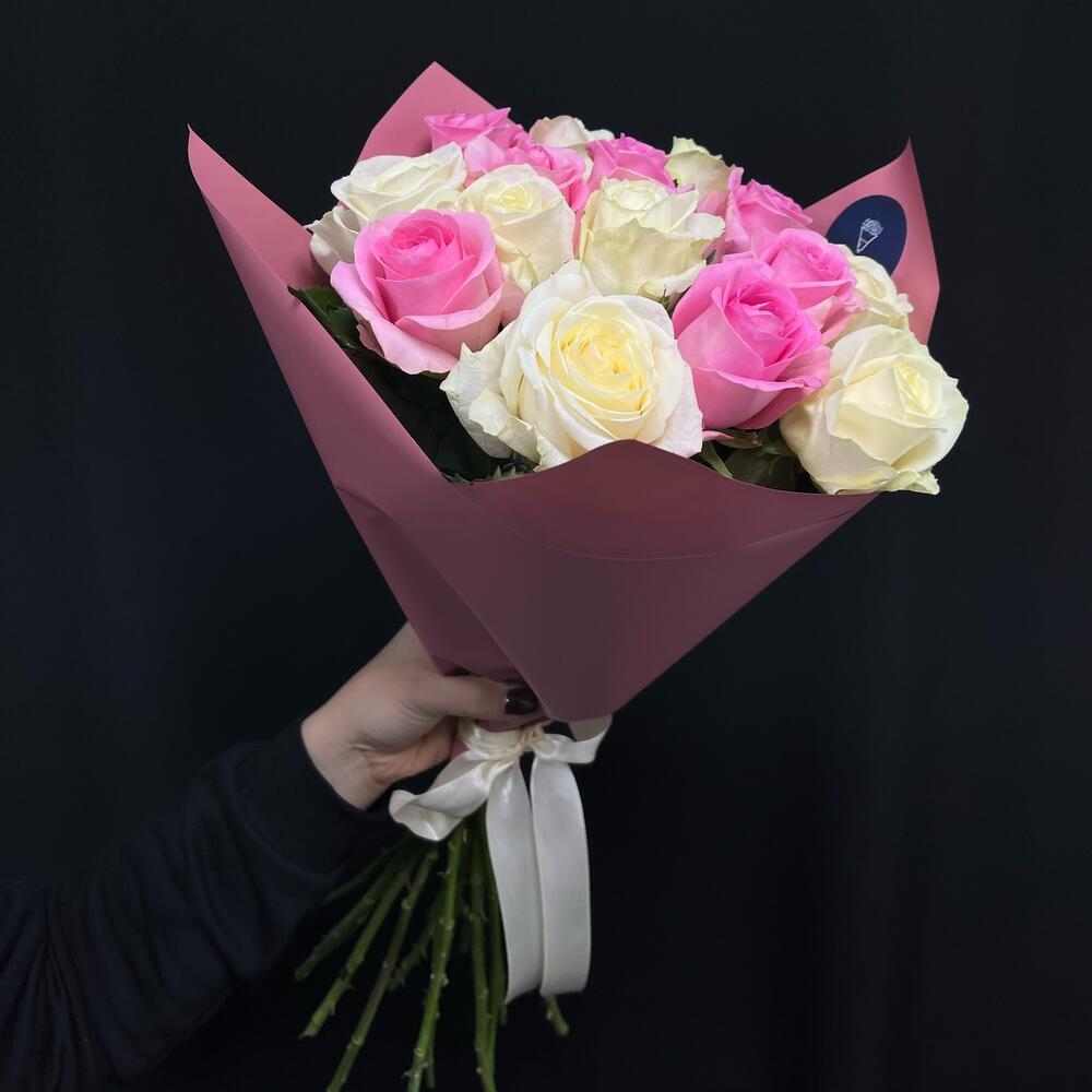 Букет из 15 белых и розовых роз