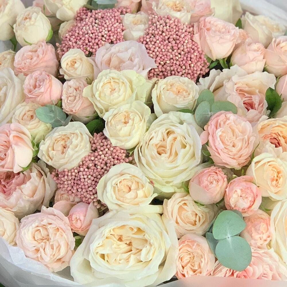цумуги – 5 шт.white o’hara – 7 шт.Озотамнус – 3 шт.Бомбастик – 6 шт.куст роза – 6 шт.Эвкалипт – 1 шт.Тишью – 2 шт.Корейская пленка – 2 шт.