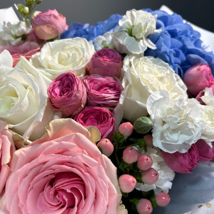 Гвоздики, Кустовые розы, Лизиантусы, Пионовидные розы, Розы